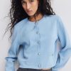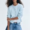 Cardigan girocollo in lana e cotone azzurro chiaro bice