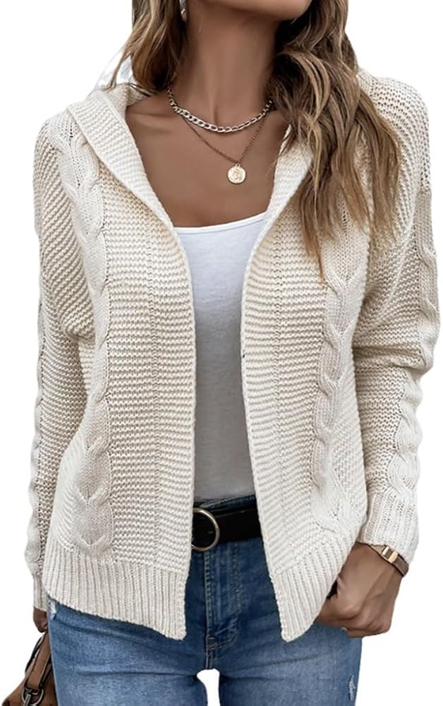 Cardigan Donna Casual a Maniche Lunghe con Cappuccio Moda Autunnale Maglia a Tinta Unita Maglioni Aperti Sul Davanti Capispalla (Color : Beige, Size : …