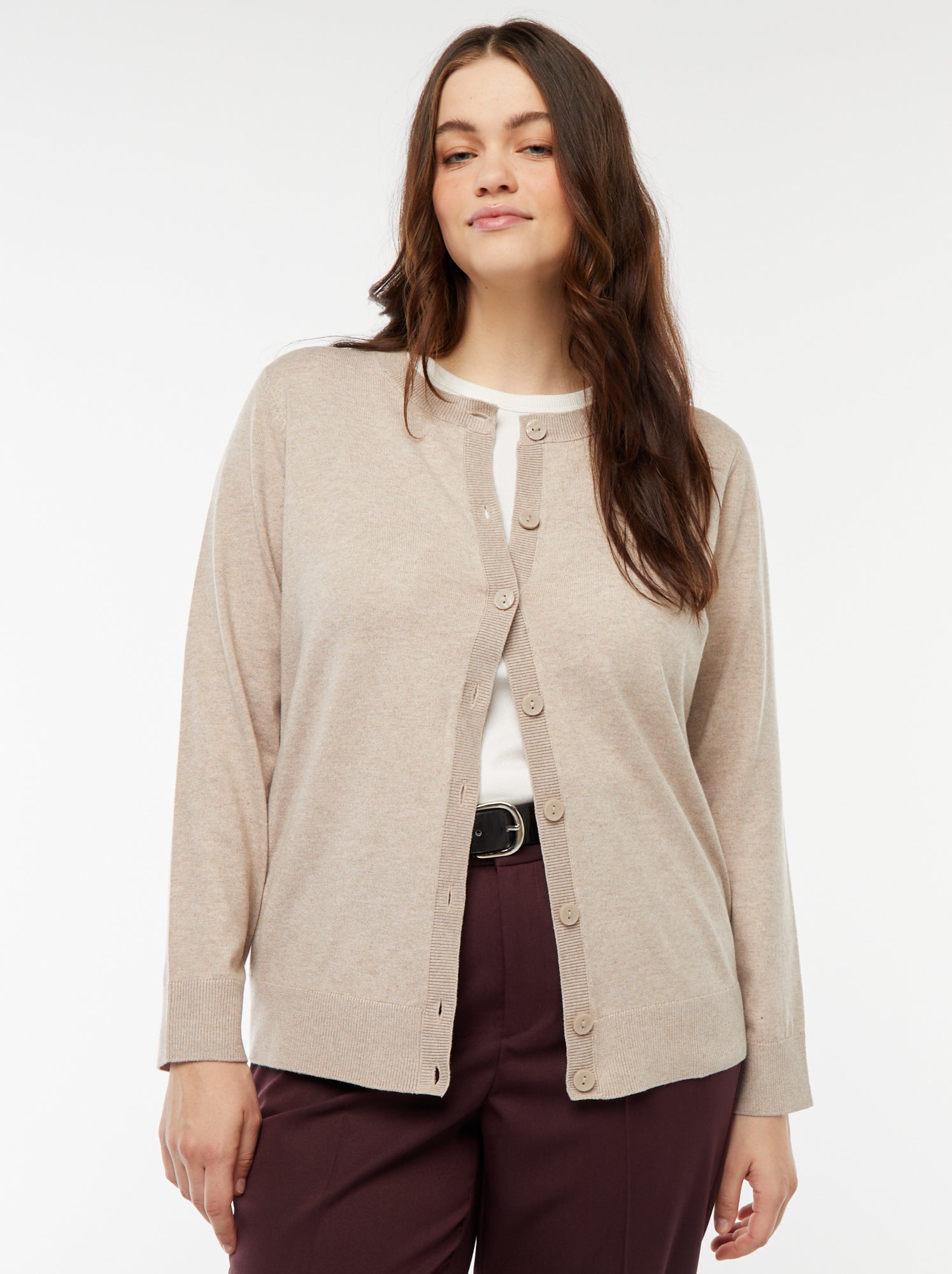Cardigan in maglina leggera con apertura con bottoni Beige