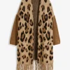 Cardigan moderno con fantasia leopardata e frange Beige / nero / marrone leopardato