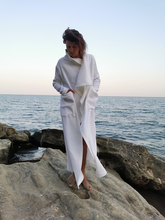 Cardigan lungo bianco, cardigan bianco lungo, cardigan lungo in maglia, cardigan avvolgente, cardigan in maglia bianca, capospalla in maglia, capospalla in maglia bianca Etsy Italia