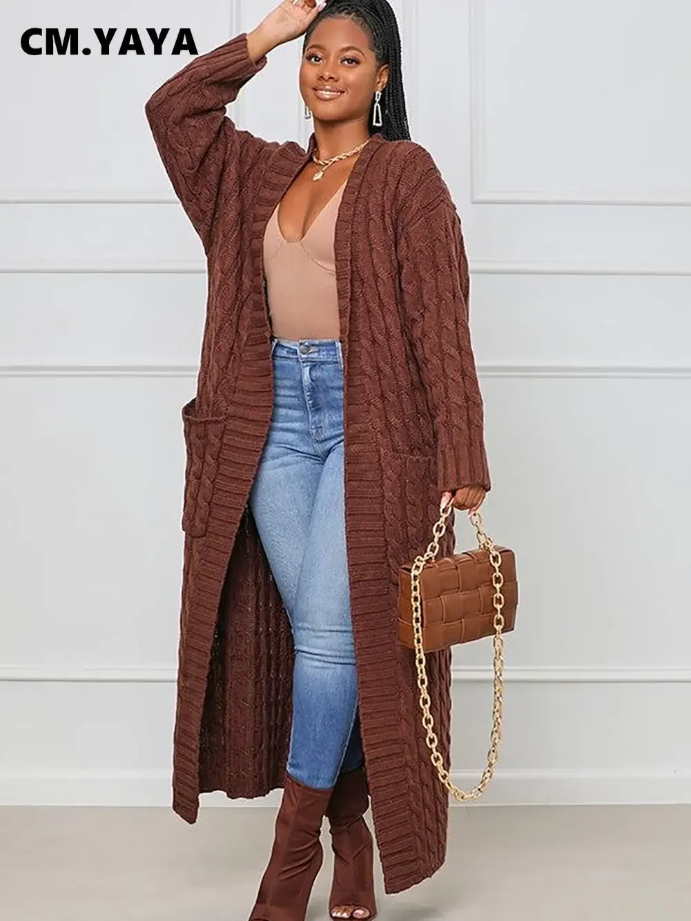 Lungo Donna Invernale Cardigan Lungo Invernale Colorato Donna Maglia A Costine Fiore Di Canapa Manica Lunga