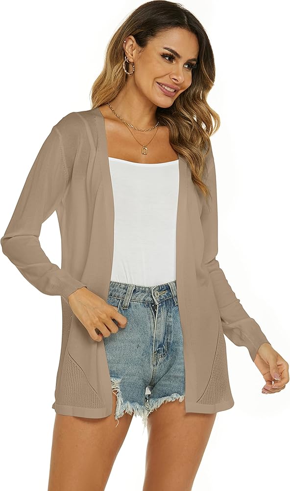 Ietaoo Cardigan Lungo Donna Elegante Manica Lunga Giacca Cardigan Casual Maglia Cappotto Leggero Aperto Davanti Cardigan per Estivo Primavera Beige S …