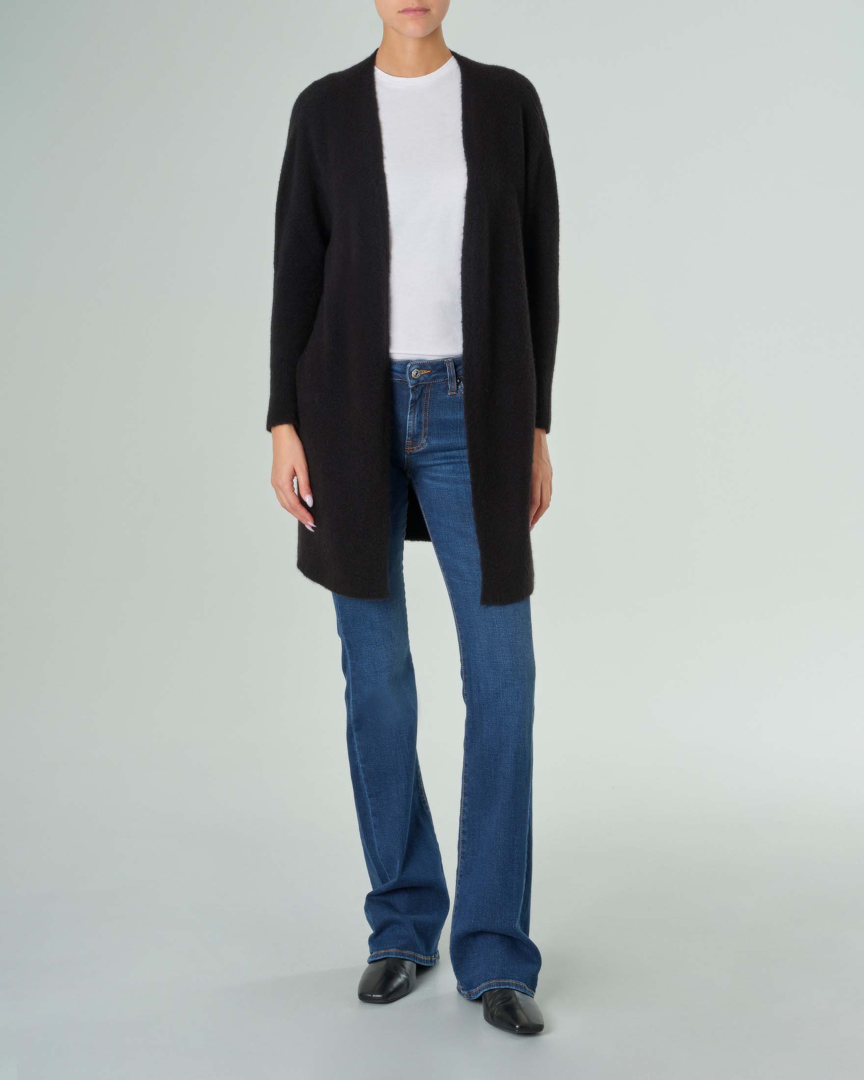 Cardigan lungo nero in misto alpaca senza bottoni di chiusura