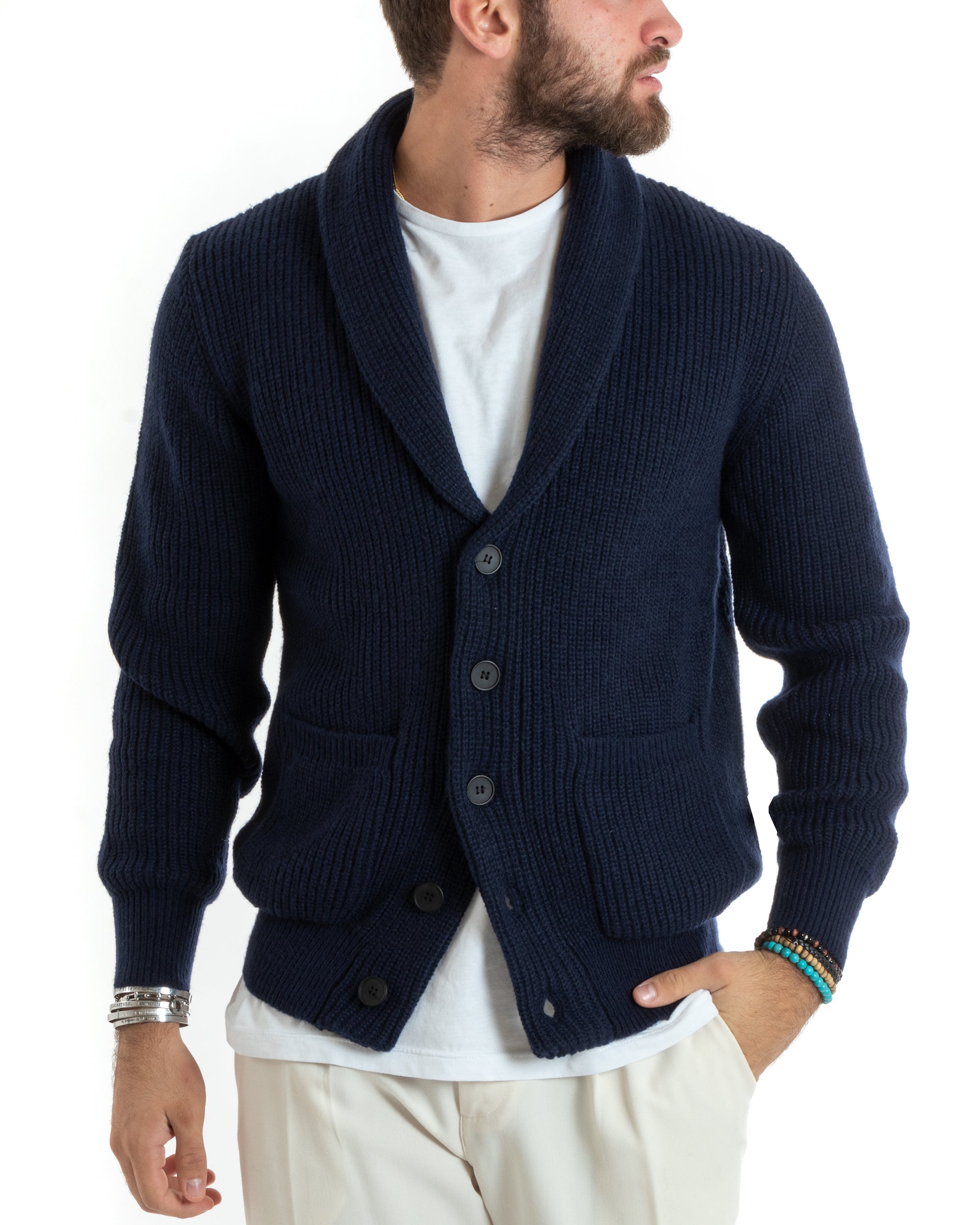 Cardigan Uomo Giacca Con Bottoni Maglia Con Tasche A Toppa Maglioncino